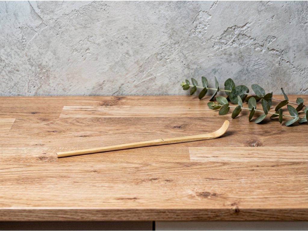 Bambusová lyžička Chashaku je jedným zo základných nástrojov tradičného japonského čajového obradu a nesmie chýbať pri správnej príprave kvalitnej matchy. Vyrába sa z jedného kusu prírodného bambusu, ktorý je jemne ručne tvarovaný a tepelne ohýbaný, aby získal svoj elegantný oblúk a hladký povrch.